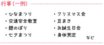 どをします。天気が良い日には外遊びに出かけます。