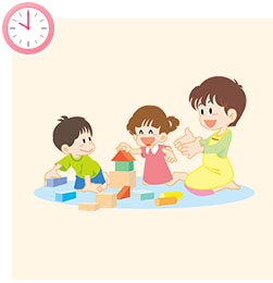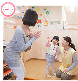 お昼寝から起きたら、ママが迎えに来るまで、仲良しのお友だちや保育者と楽しく過ごします。
